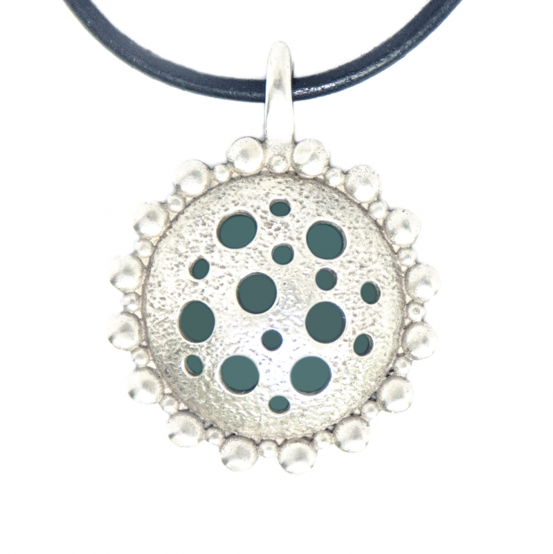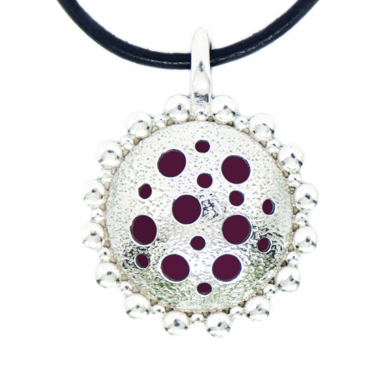 Solar System emotion jewellery, available in different color options for the inner part. The round Solar System pendant belongs to our Universum series and it is made of sterling silver. Pendant dimensions: weight 11 g, diameter 32 mm, thickness 6.5 mm.